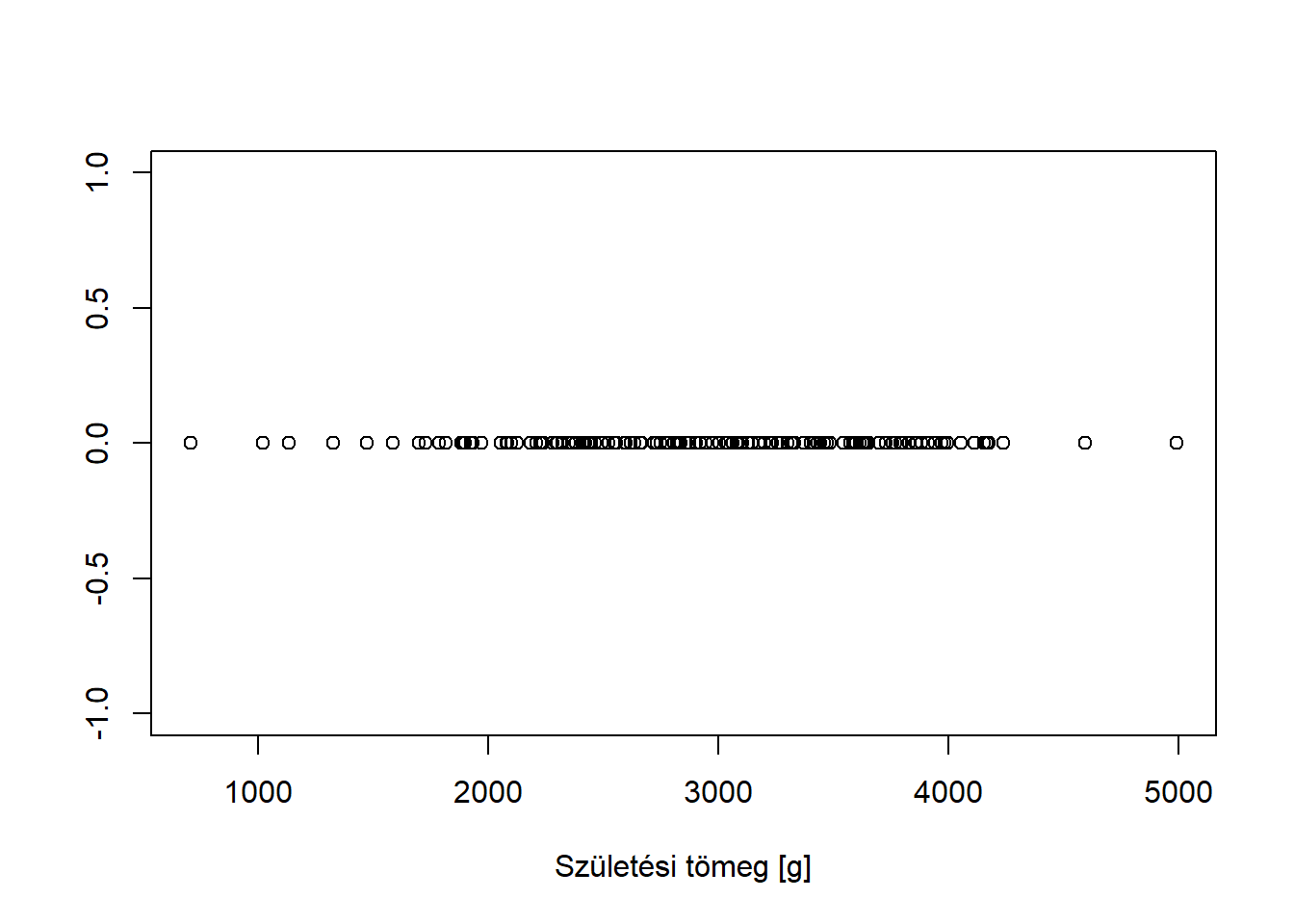 A születési tömegek mintaminimuma 709 gramm, mintamaximuma 4990 gramm, így e változó terjedelme 4281gramm.